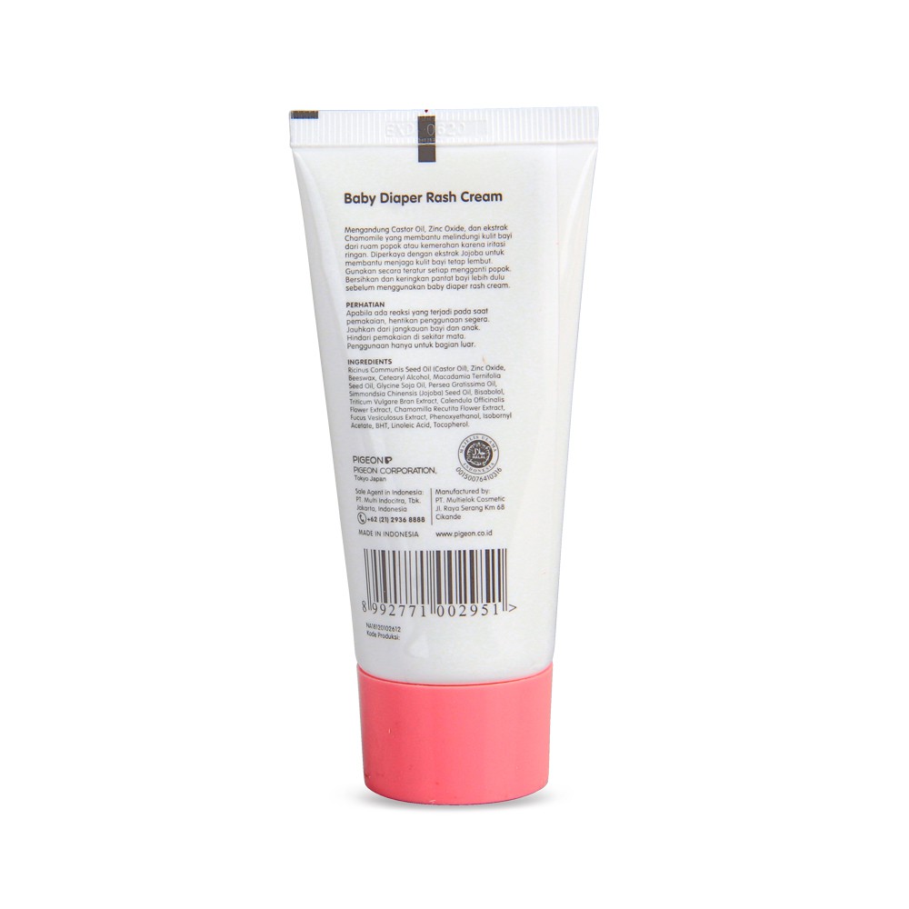 Pigeon baby cream diaper rash adalah cream yang dapat melindungi kulit bayi anda dari ruam popok atau kemerahan karena iritasi ringan mengandung zinc oxide serta ekstrak jojoba dan chamomile yang menjaga kulit bayi tetap lembut.